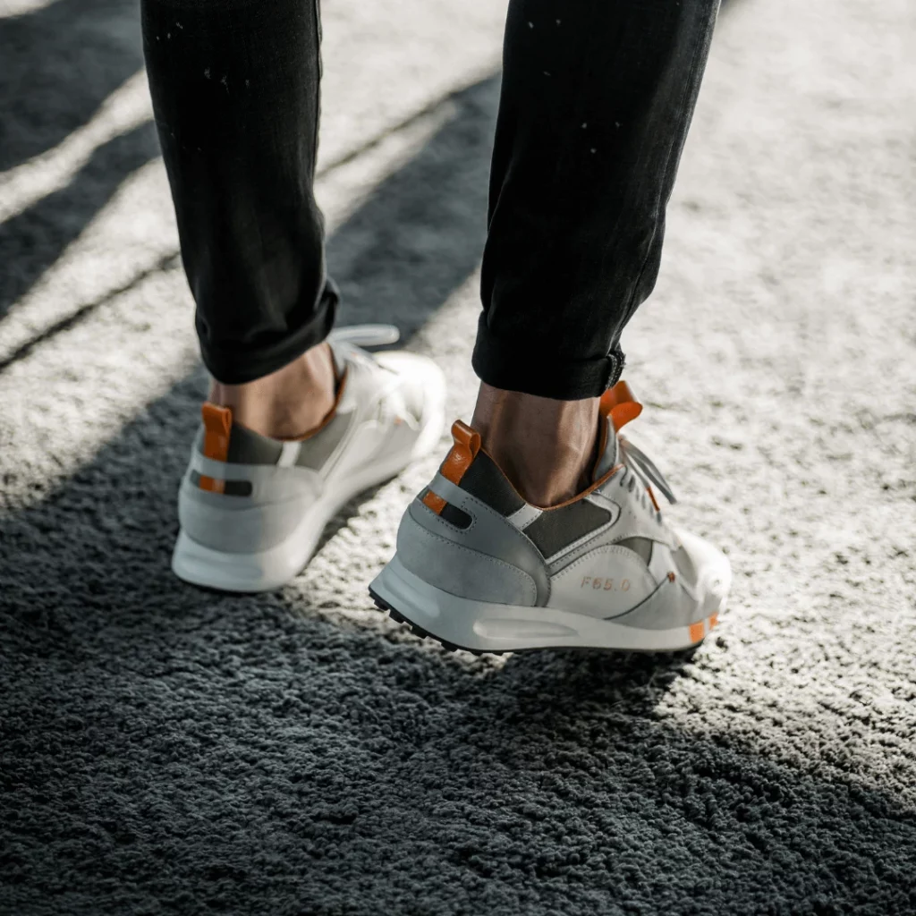 A new addition is a light mesh insert in the front area of the sneaker, kept in a subtle beige, which not only visually underlines the sporty appearance, but also sets accents in terms of wearing comfort. Other highlights in the design are the small but fine details that are presented in contrasting colors, such as the parallel decorative seams, the double stripes on the outside of the sole or the curved gradients within the materials. In connection with the padded, orange interior of the shoe, the unique seams and the subtle, embossed branding on the tongue and outside of the sneaker, these shoes inevitably belong to every man who attaches great importance to fashionable sportiness and a unique look.