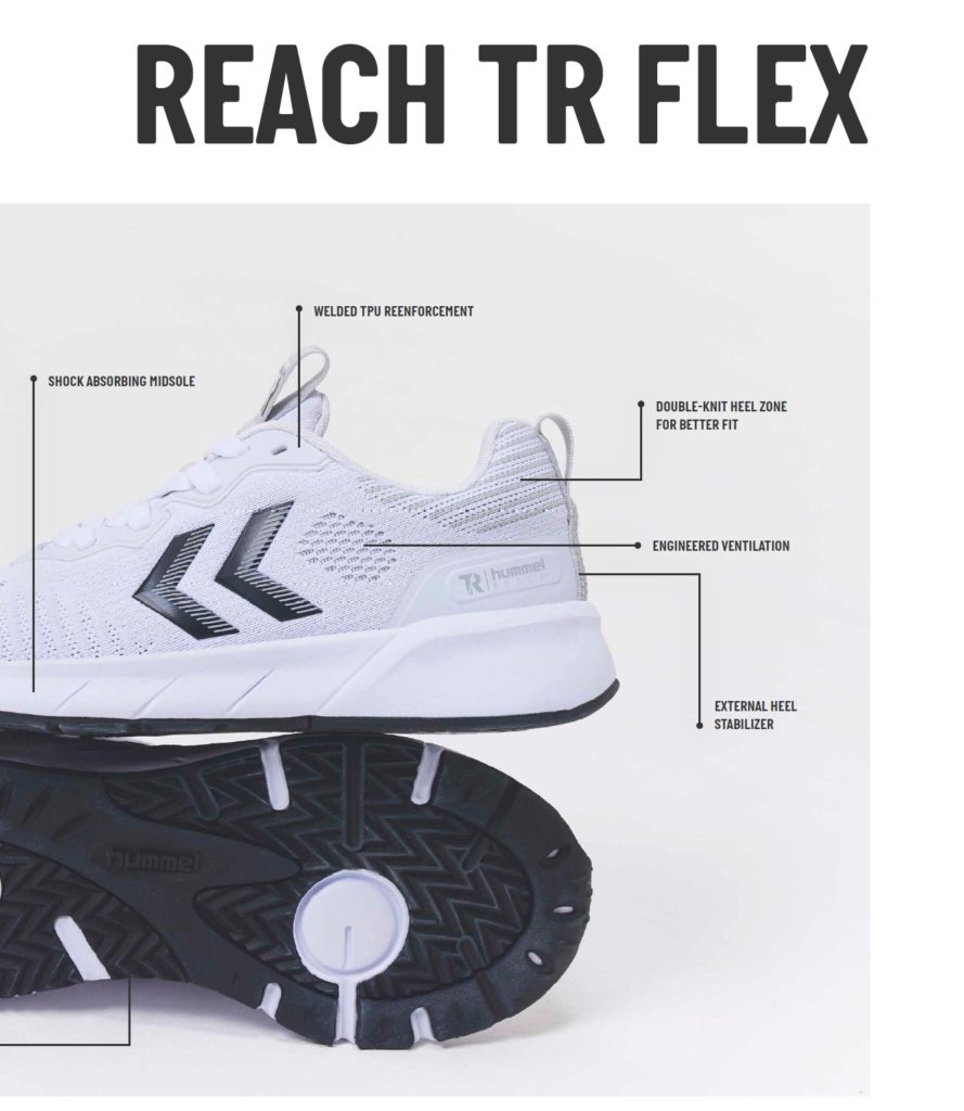 The REACH TR FLEX are equipped with hummel’s REACH LX technology – which is a midsole compound designed to meet the demands of hummel’s professional athletes. Otherwise include an outsole designed for flexibility, traction and optimal grip. This is done in knit technique with ventilation zones for maximum breathability.